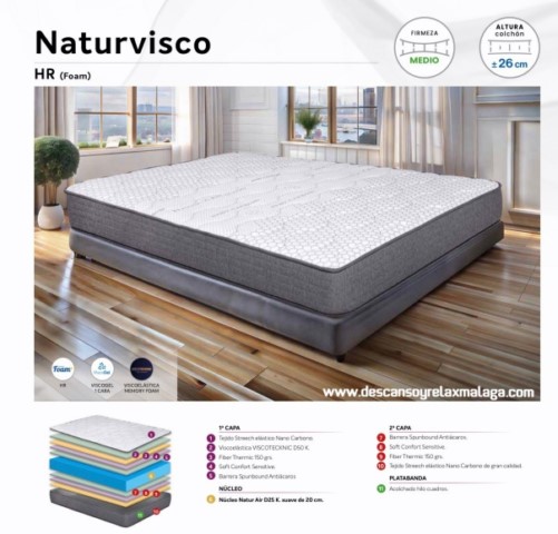 Colchón viscogel a una cara modelo Natur Visco, 26cm altura, fabricación española Adimfex.